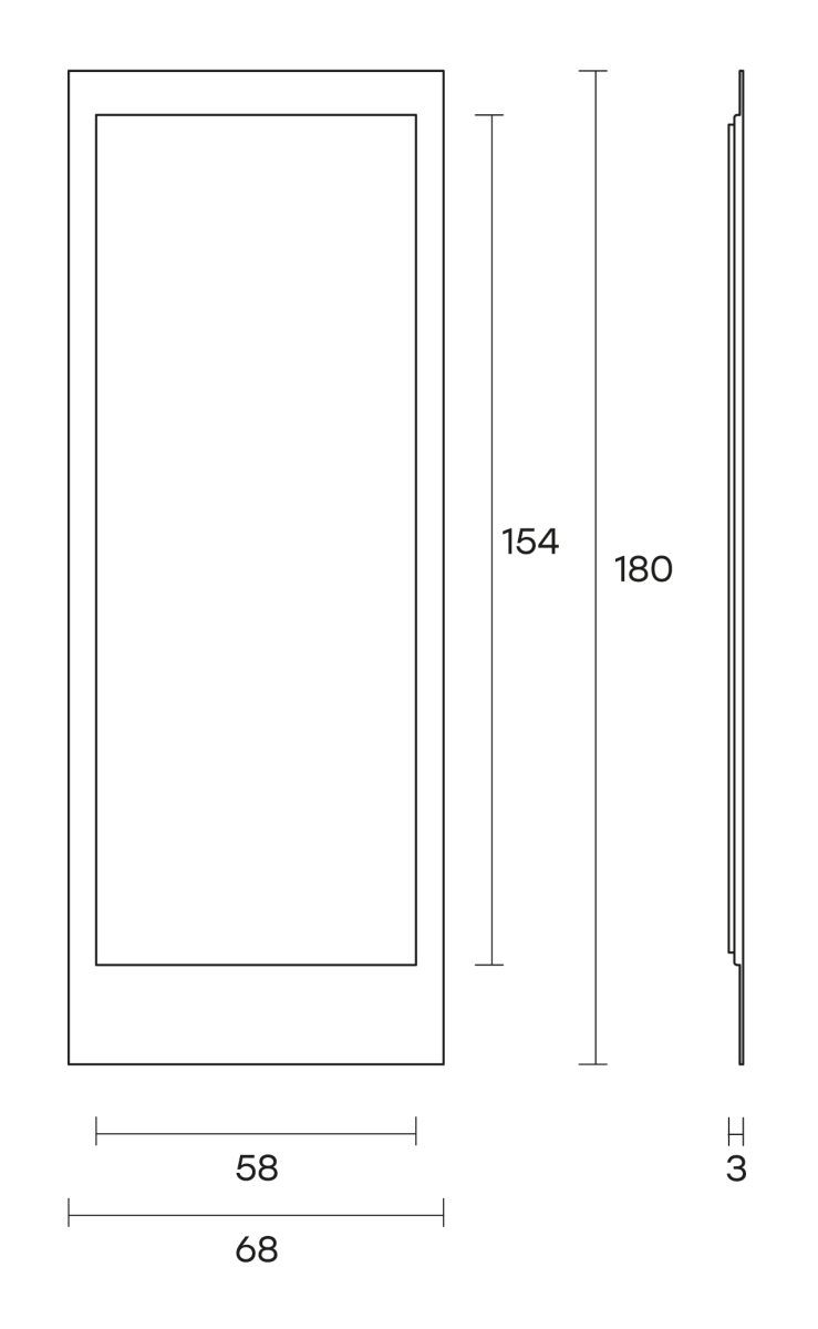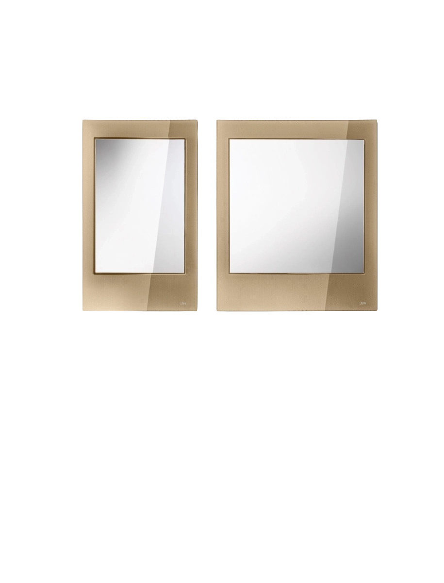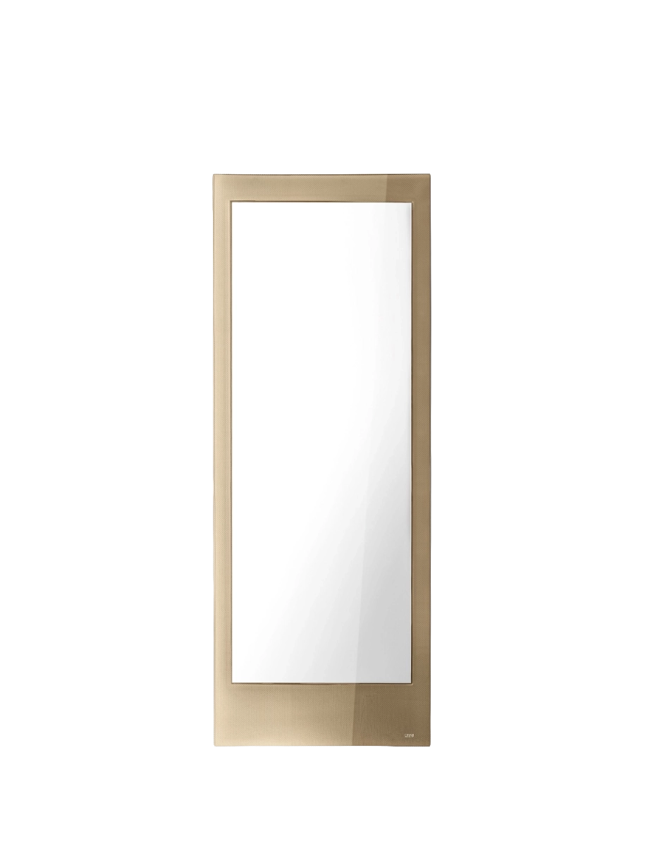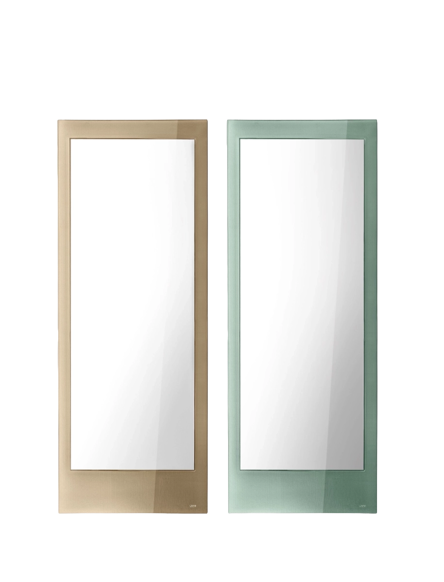 Ein reflektierendes Rechteck, eine essentielle und reine Form, nimmt das Spiegelbild auf, ohne sich aufzudrängen, und füllt den Raum diskret aus.