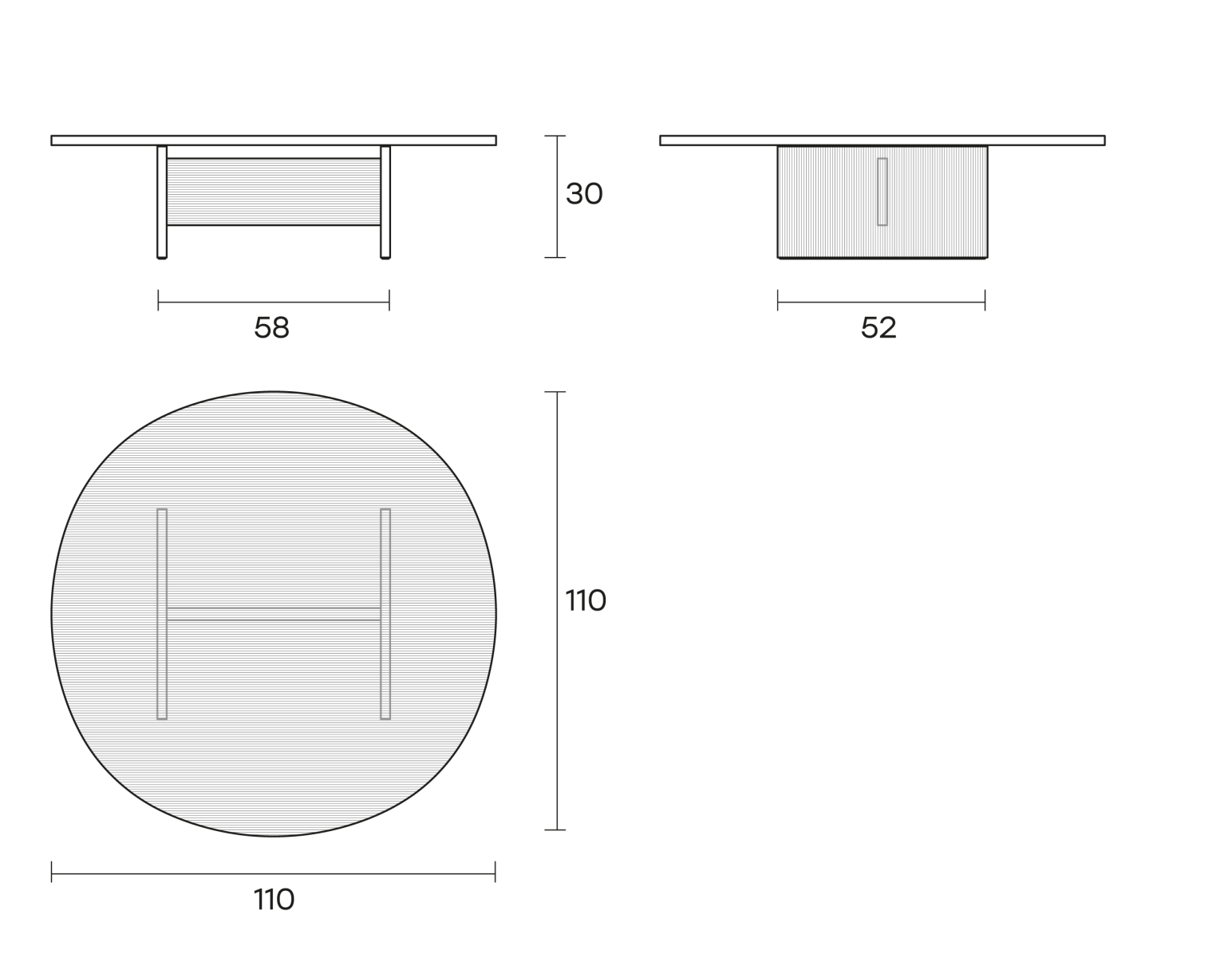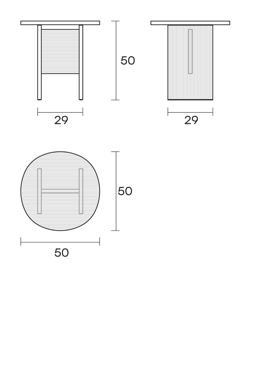 Divano fisso o componibile con struttura interna in legno multistrato. Molleggio seduta con cinghie elastiche. Imbottitura dei cuscini seduta in poliuretano a densità variabile; imbottitura dei cuscini schienale in piuma d’oca lavata e sterilizzata.