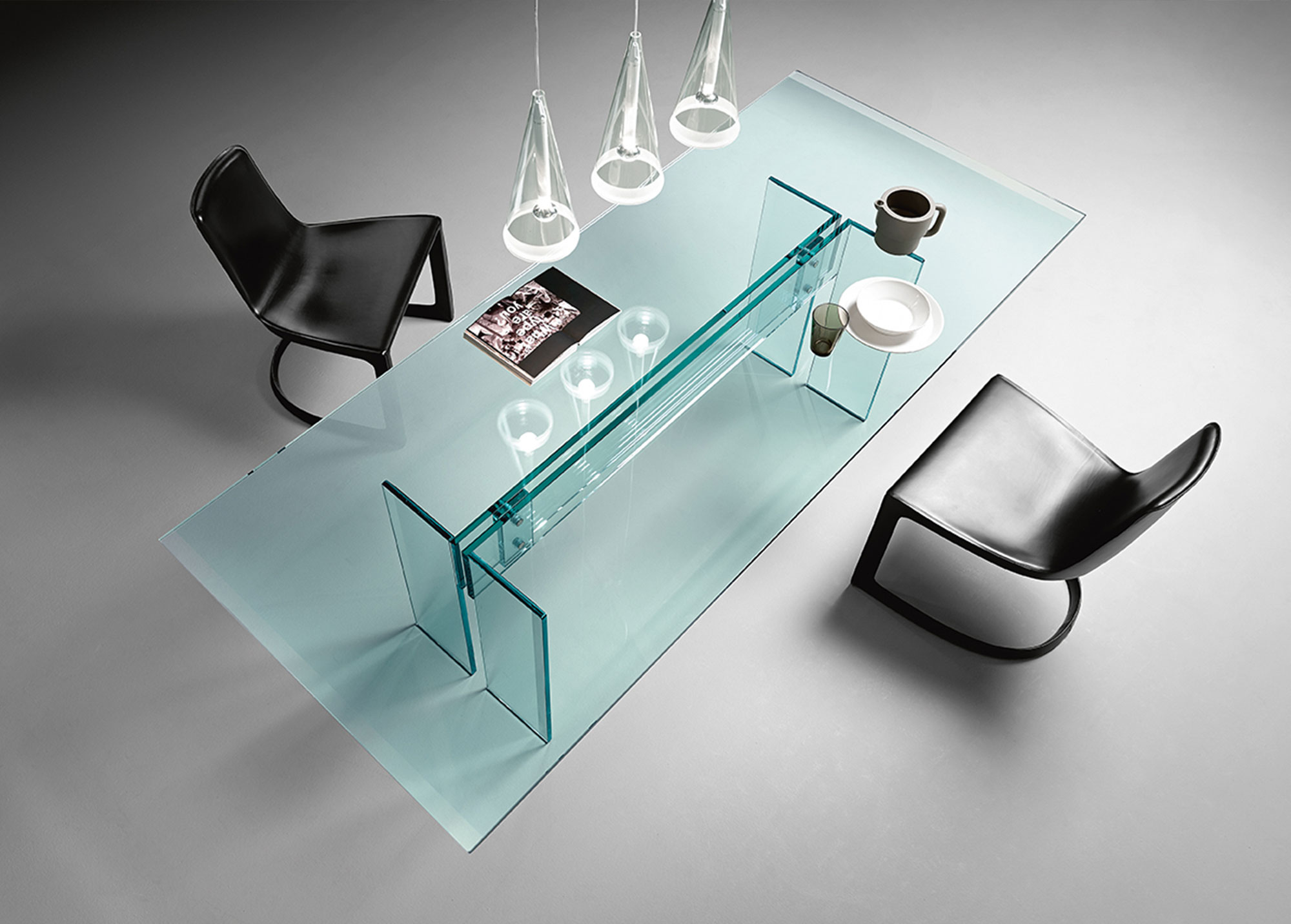 LLT Long Long Table has been designed by the prestigious Dante O. Benini and Luca Gonzo studio and inspired by master architect Frank Lloyd Wright (hence the double “L”). Thanks to Fiam research the project - a fantastic flight into dematerialisation - achieves unthinkable lengths till now for a top supported by structures completely made of glass.