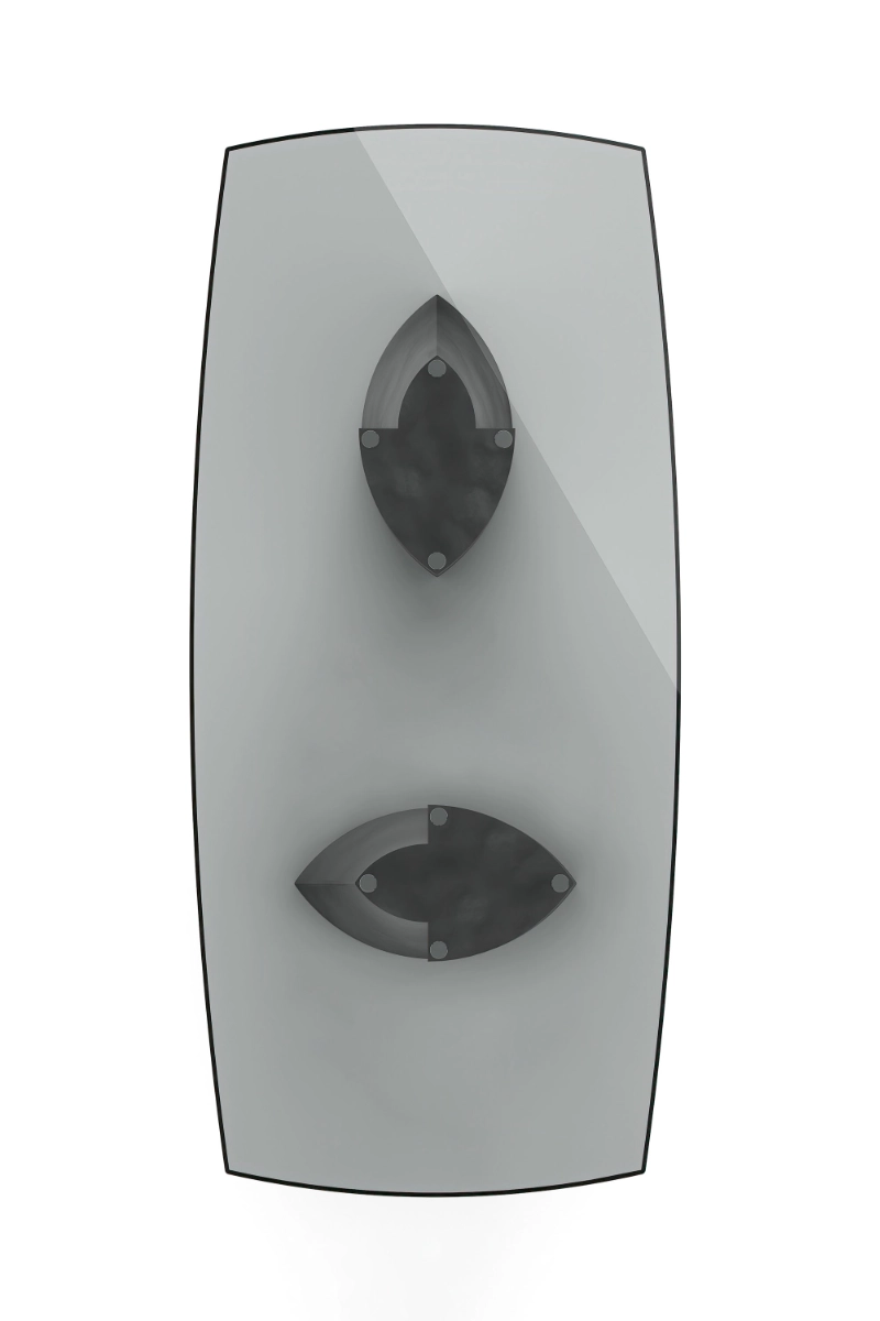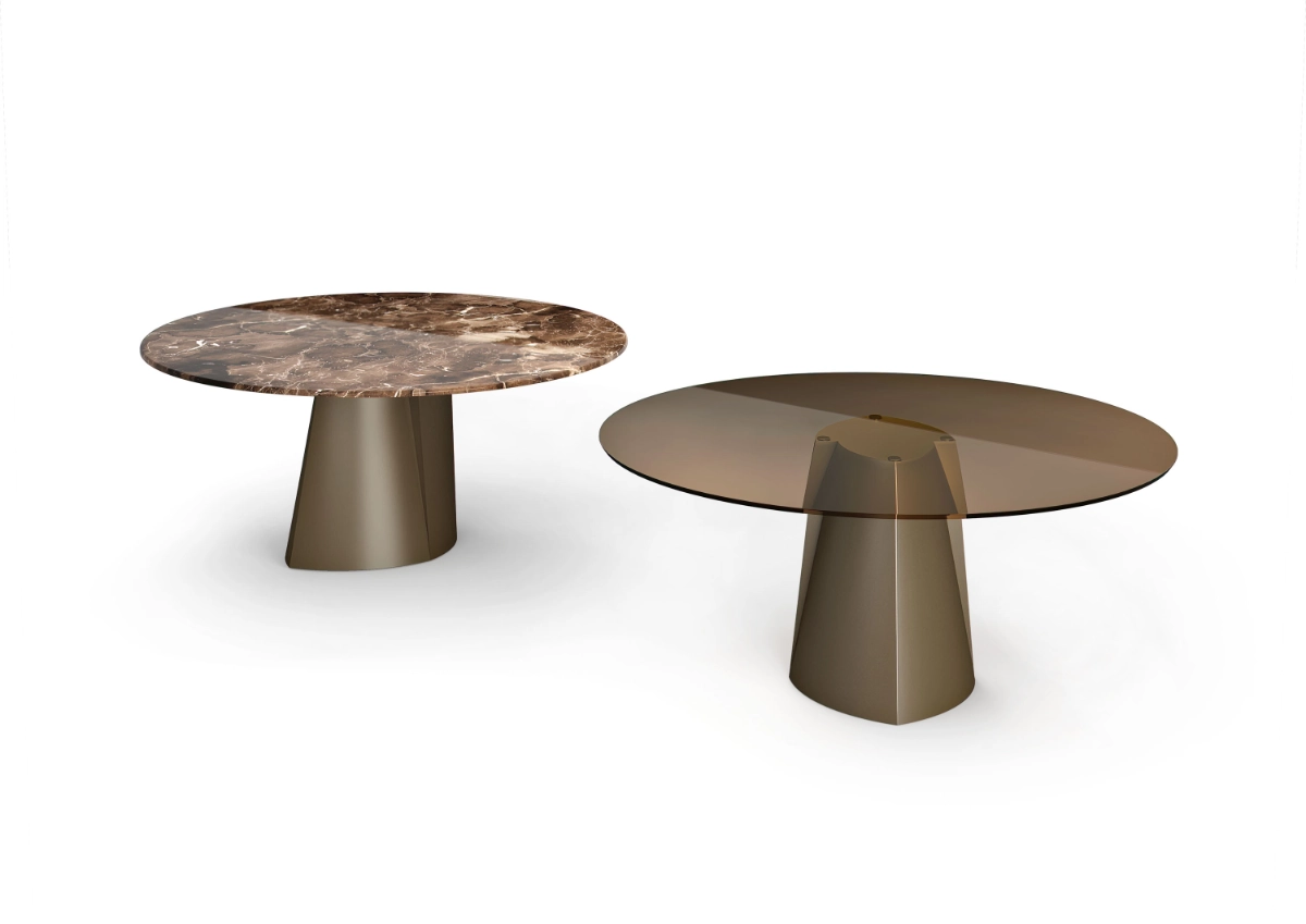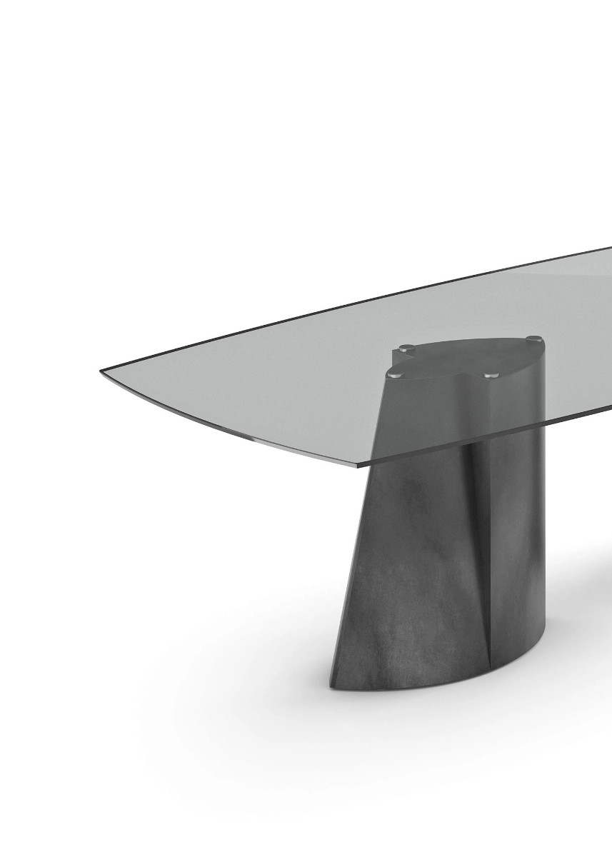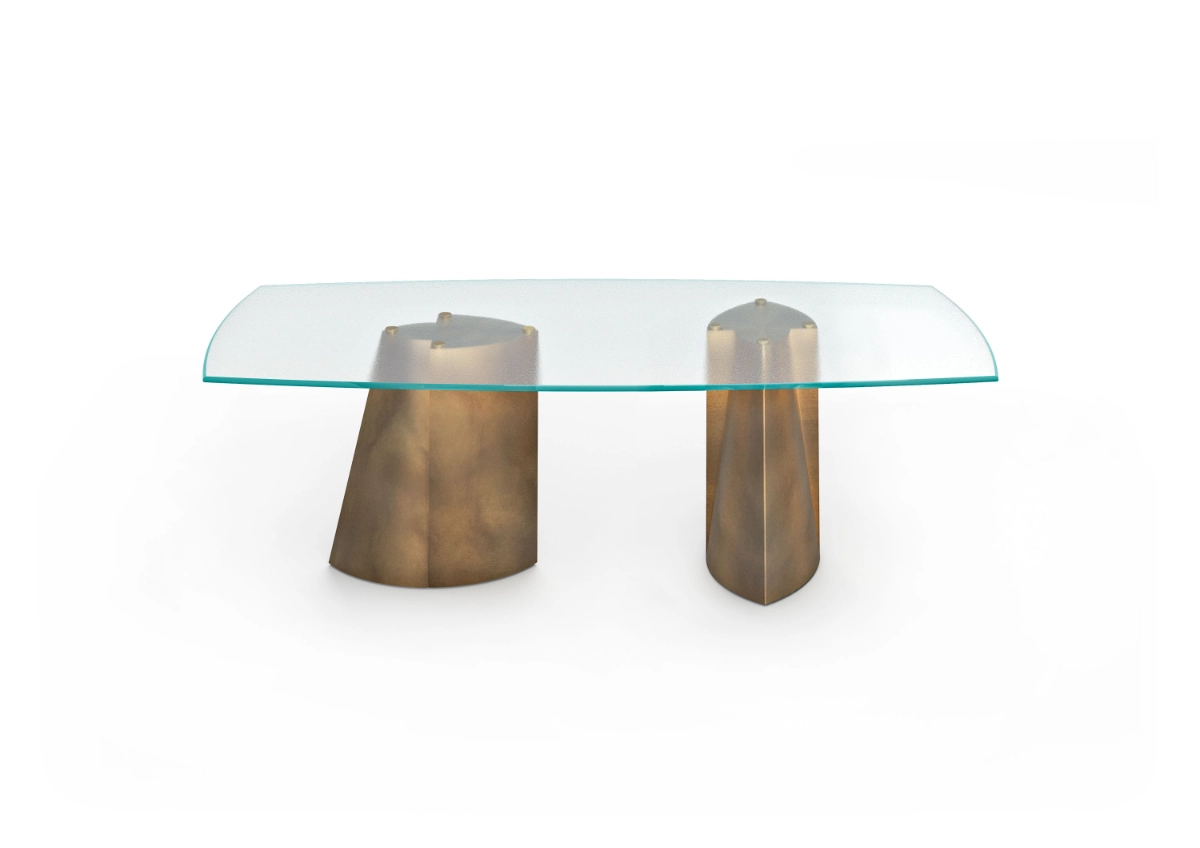 Ogiva stems from a reflection on the dialogue between material and tension, between transparency and mass. Its name evokes an ancient architectural archetype, the ogival arch: a form capable of transforming gravity into momentum. I wanted to evoke the same energy in a system of tables that would be both structure and passage, presence and light.