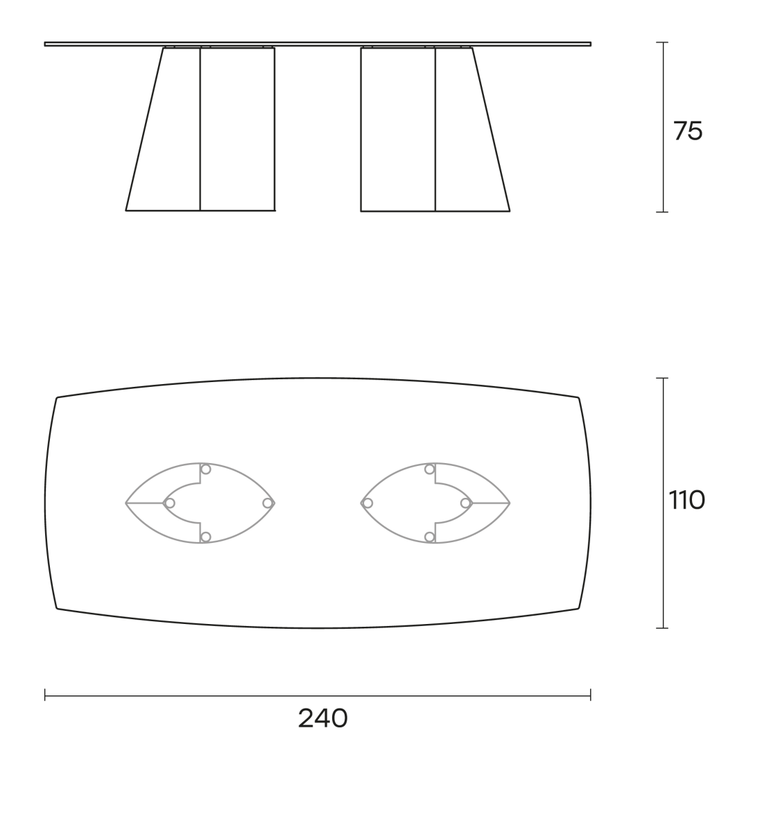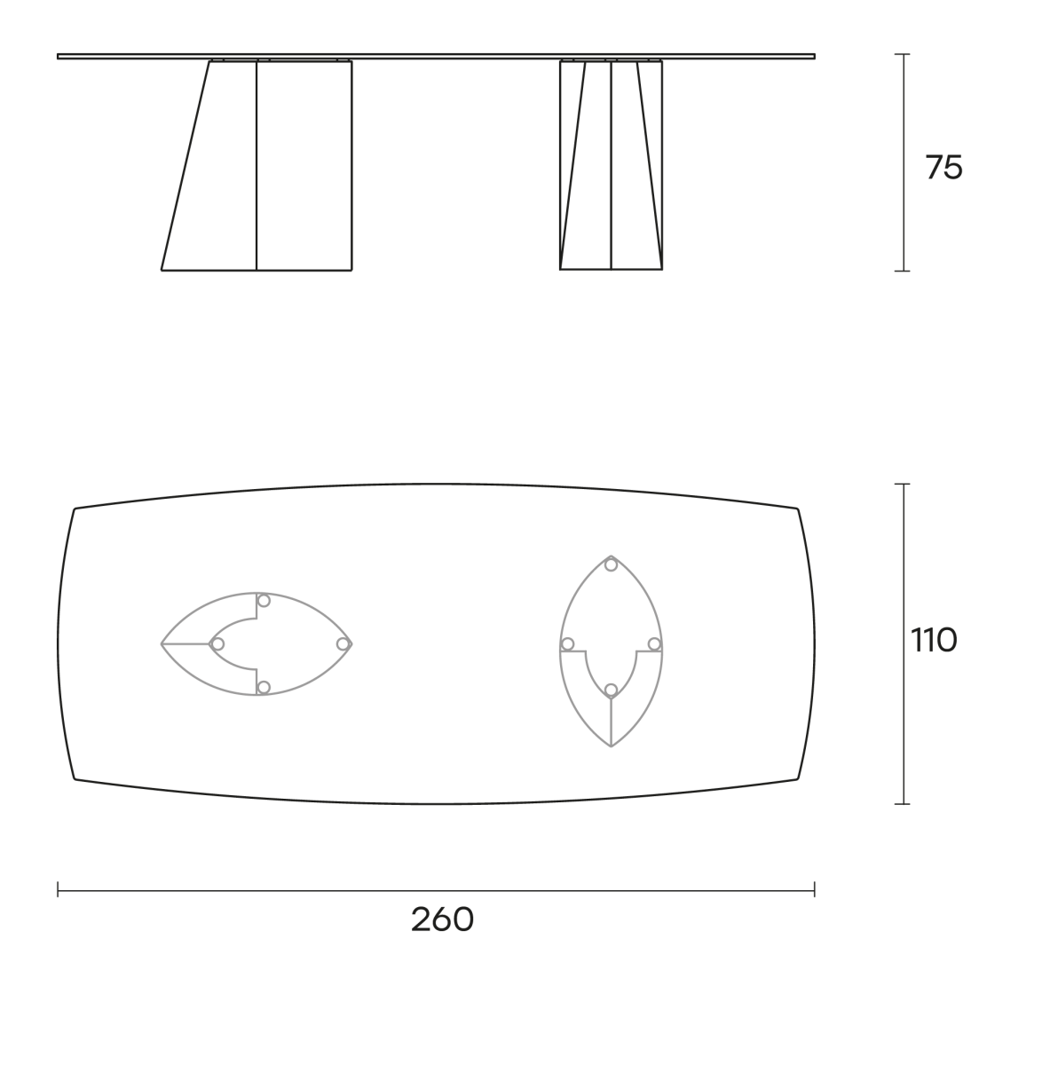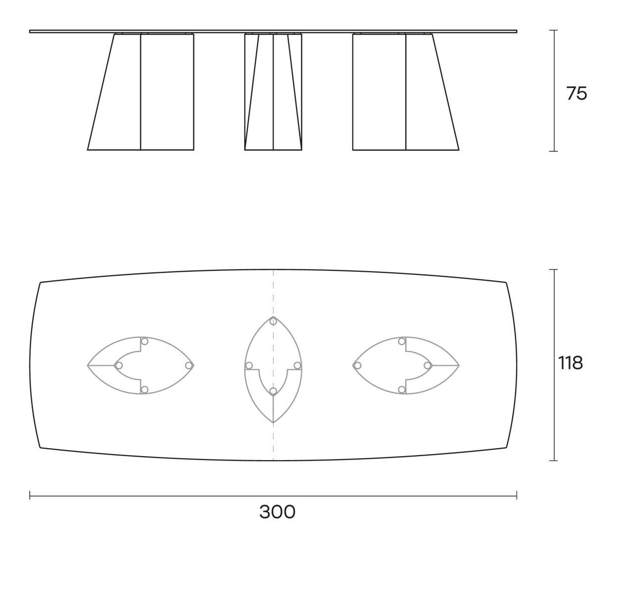 Ogiva stems from a reflection on the dialogue between material and tension, between transparency and mass. Its name evokes an ancient architectural archetype, the ogival arch: a form capable of transforming gravity into momentum. I wanted to evoke the same energy in a system of tables that would be both structure and passage, presence and light.