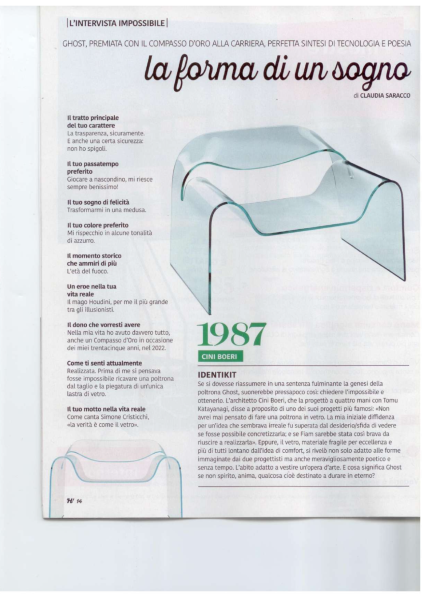 Nella pagina di HOME è stata pubblicata la poltrona Ghost, premiata con il compasso d’oro alla carriera, perfetta sintesi di tecnologia e poesia.