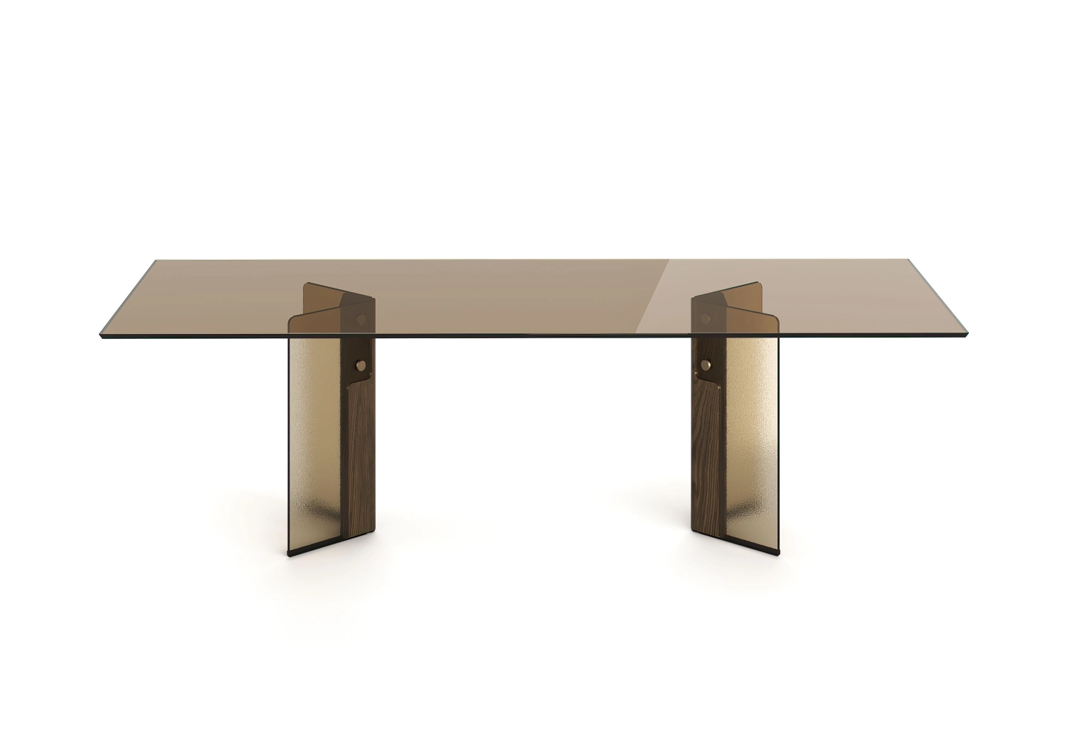 Il vetro rappresenta certamente un elemento fortemente caratterizzante nella nostra collezione di tavoli di design, ma è anche in grado di relazionarsi con diverse essenze e superfici.